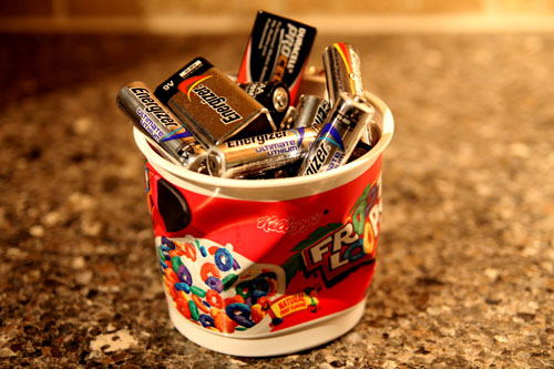 Now, I haven’t done the math on this but that cup is full of expensive batteries. 8 pack of those Energizer lithium AA’s are like $18. Those 9 volts? like $3 a piece. So yeah, thats a good bit of money that I’m tossing down the drain for each shoot, not to mention harm to mother earth. Now of course I don’t toss these in the garbage, I take them to Wholefoods’ battery recycling bin, which I’ve been known to fill up.