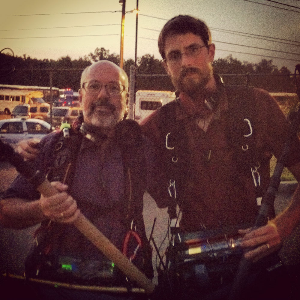 Here’s the camera man, Robb Shaw and myself after getting rained on in 40 degree temps, aka not so fun. But other than that, an awesome crew and a good time hanging around Blacksburg and VA Tech!